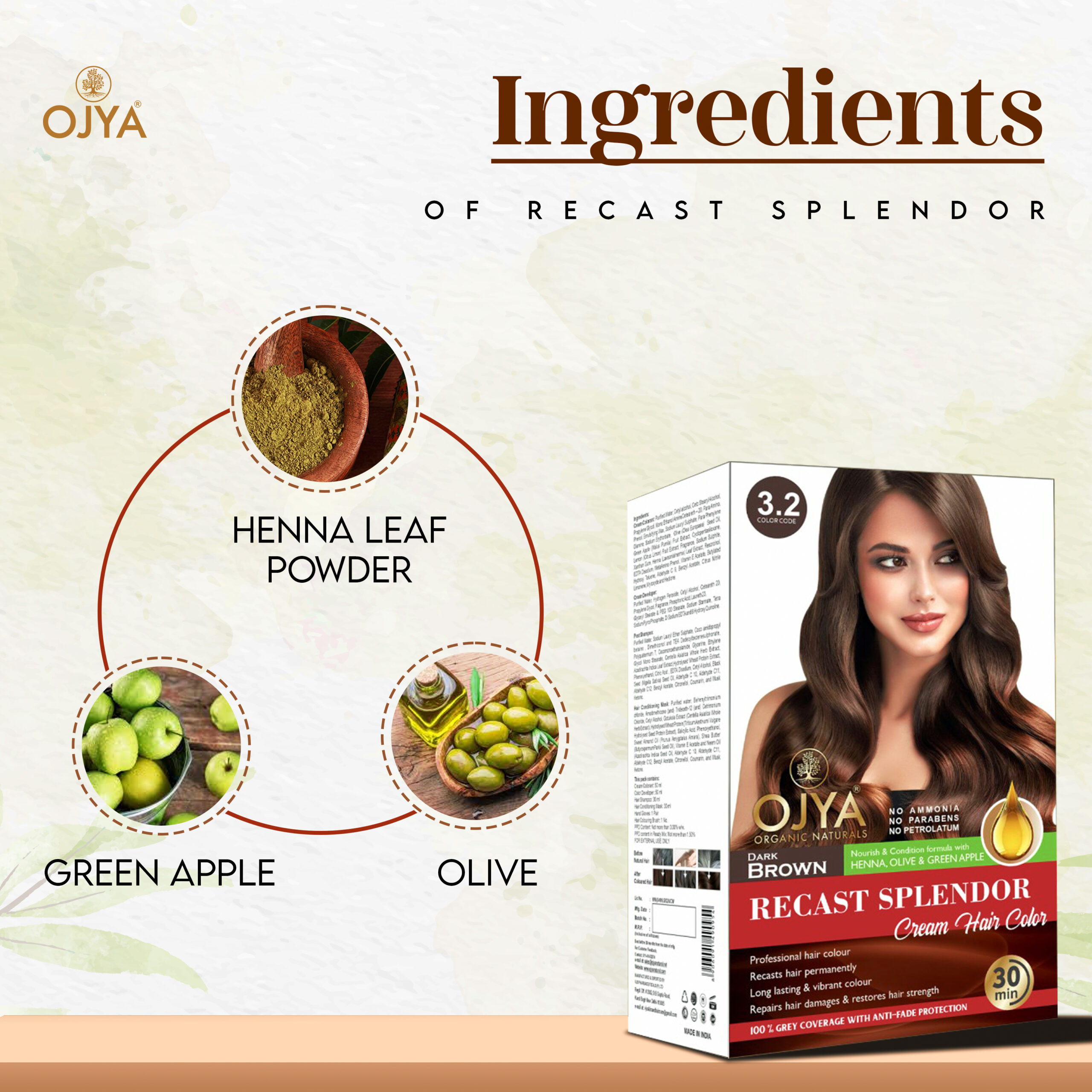 KERATIN RECAST DARK BROWN CREAM HAIR COLOR COMBO WITH POST HAIR SHAMPOO 200 ML , HAIR OIL 200 ML WITH NEEM WOODEN COMB
