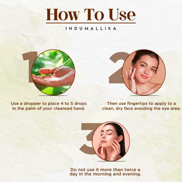 - Take 2-3 drops of the serum and gently massage it onto your face using upward circular motions. Focus on areas of concern such as dark spots, wrinkles, or dry patches.