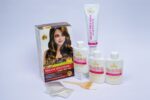 Cream Colorant: Purified Water, Cetyl alcohol, Ceto Stearyl Alcohol, Propylene Glycol, Mono Ethanol Amine, Para Phenylene Diamine, Ceteareth – 20, Emulsifying Wax Non-Ionic, Sodium Lauryl Sulphate, Sodium Erythorbate, Olive (Olea Europaea) Seed Oil, Green Apple (Malus Pumila) Fruit Extract, Cyclopentasiloxane, Lemon (Citrus Limon) Fruit Extract, Fragrance, Sodium Sulphite, Xanthan Gum, Henna (Lawsonia Inermis) Leaf Extract, Para Amino Phenol, EDTA Disodium, Vitamin E Acetate, Butylated Hydroxy Toluene, Meta Amino Phenol, and Resorcinol. Cream Developer: Purified Water, Hydrogen Peroxide, Cetyl Alcohol, Ceteareth 20, Propylene Glycol, Fragrance, Phosphoric Acid, Laureth 23, Glyceryl Stearate & PEG 100 Stearate, Sodium Stannate, Tetra Sodium Pyro Phosphate, Di Sodium EDTA and8 Hydroxy Quinoline. Protein Shampoo: Purified Water, Sodium Lauryl Ether Sulphate, Coco amido propyl betaine, Dimethiconol and TEA Dodecylbezenesulphonate, Polyquaternium 7, Cocomonoethanolamide, Glycerine, Ethylene Glycol Mono Stearate, Centella Asiatica Whole Herb Extract, Azadirachta Indica Leaf Extract, Fragrance, Hydrolysed Wheat Protein Extract, Phenoxyethanol, Citric Acid, EDTA Disodium, Cetyl Alcohol and Black Seed (Nigella Sativa) Seed Oil. Hair Conditioning Mask: Purified Water, Behenyl PG Trimonium Chloride, AmodimethiCan (and) Trideceth-12 (and) Cetrimonium Chloride, Cetyl Alcohol, Gotukola (Centella Asiatica) Whole Herb Extract, Hydrolysed Wheat Protein Extract, Salicylic Acid, Fragrance, Phenoxyethanol, Almond (Prunus Amygdalus Amara) Seed Oil, Shea Butter (Butyrospermum Parkii) Seed Oil, Vitamin E Acetate and Azadirachta Indica Seed Oil.