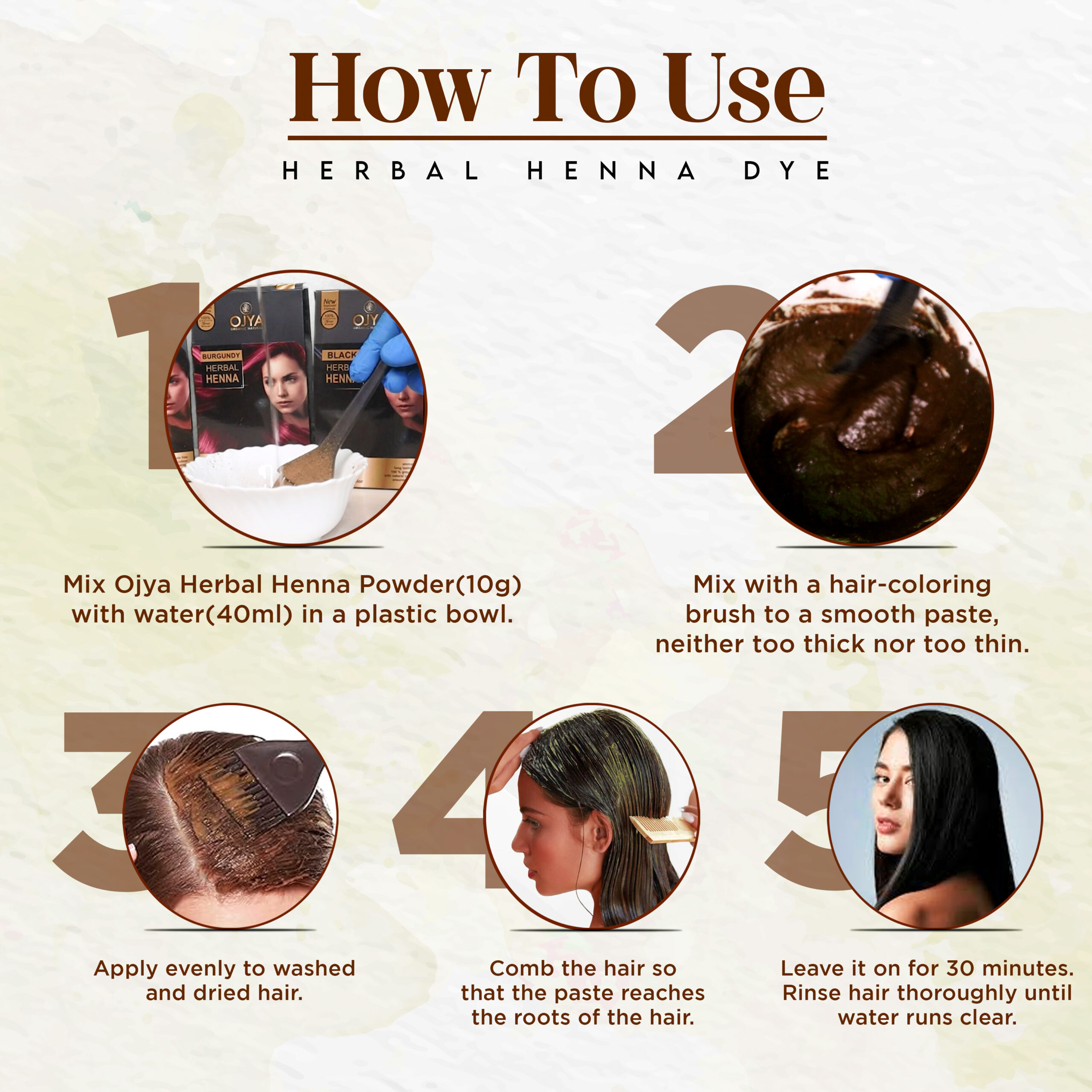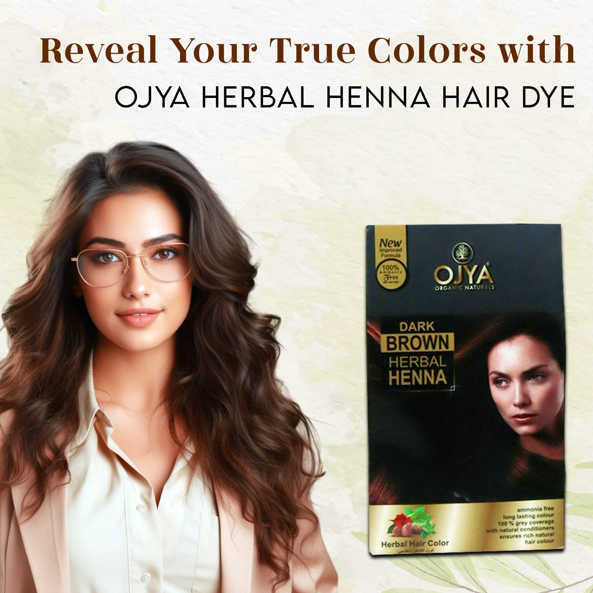 Ojya Premium Herbal Henna is available in all popular colors like Natural Black, Brown, Chestnut, Mahogany, and Burgundy.