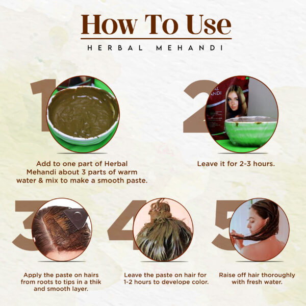 - Add to one part of herbal henna powder about 3 parts of warm water and mix to make a smooth paste.
