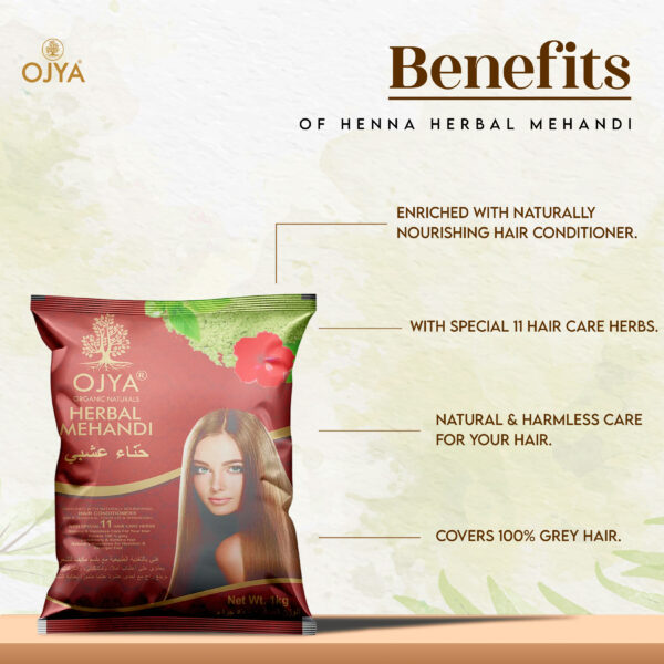 Do you want to dye your hair naturally? If, yes then Ojya Herbal Henna Powder is the perfect option for you and gets approval of nature for scalp care and hair strength. 100% natural and pure henna powder with natural herbs and no added chemicals.