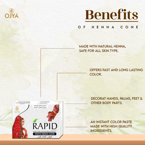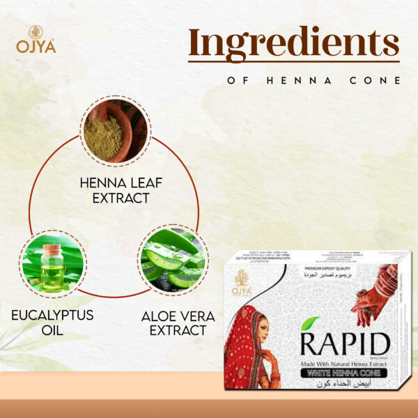 - Ojya White Rapid Henna cone is made from a natural henna plant.