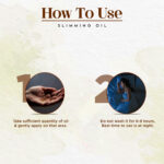 - Apply the oil on targeted areas like the abdomen, thighs, hips, and arms.